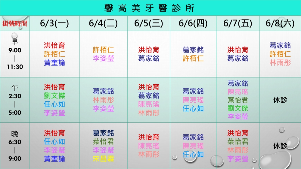 |Dainty Dental Clinic| 馨高美牙醫診所 |電話|(07)554-3456 |傳真|(07)554-6060 |地址|高雄市鼓山區龍勝路148號 歡迎來電預約看診。 進入醫療院所請配戴外科口罩,感謝您的配合 ! 高美牙醫聯盟 關心您