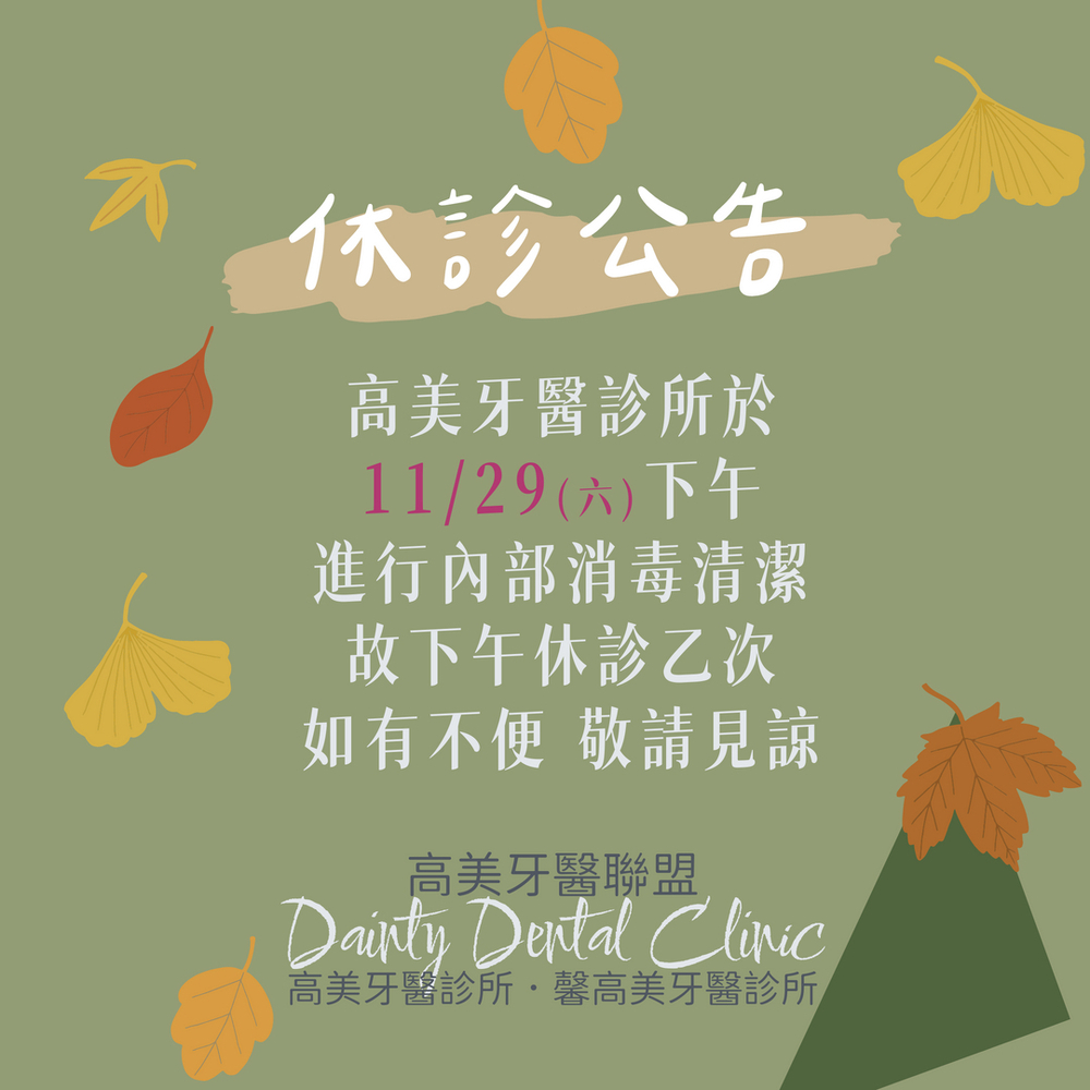 高美牙醫|1129午診休診公告|