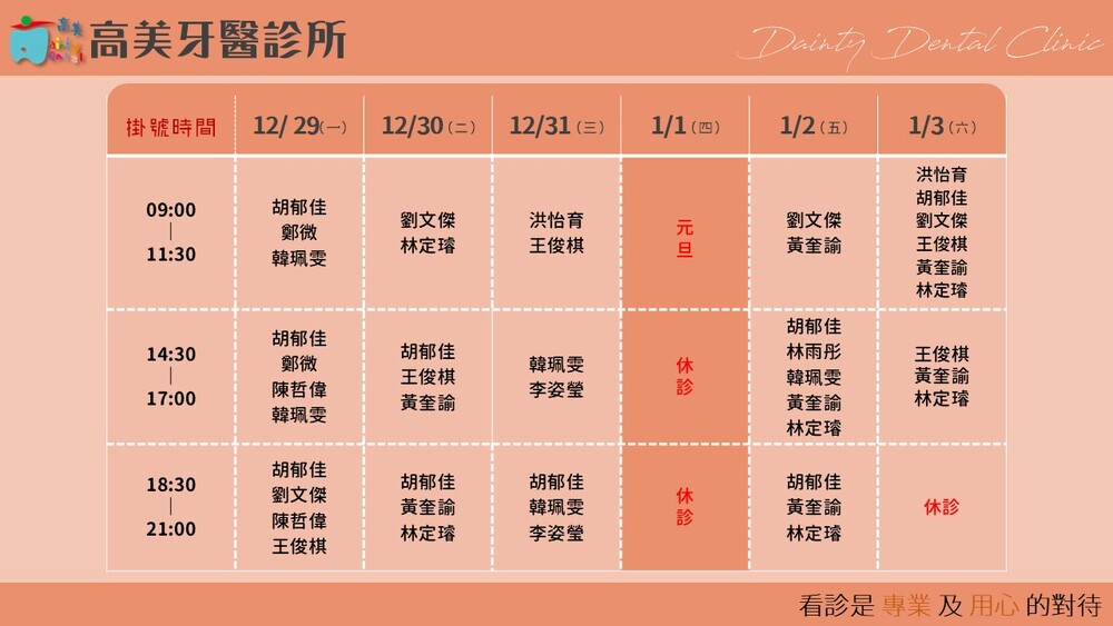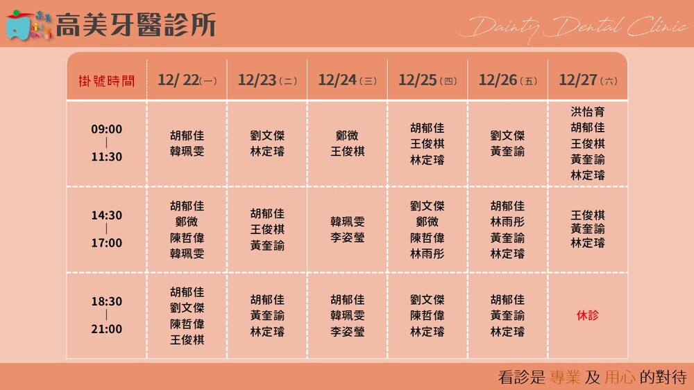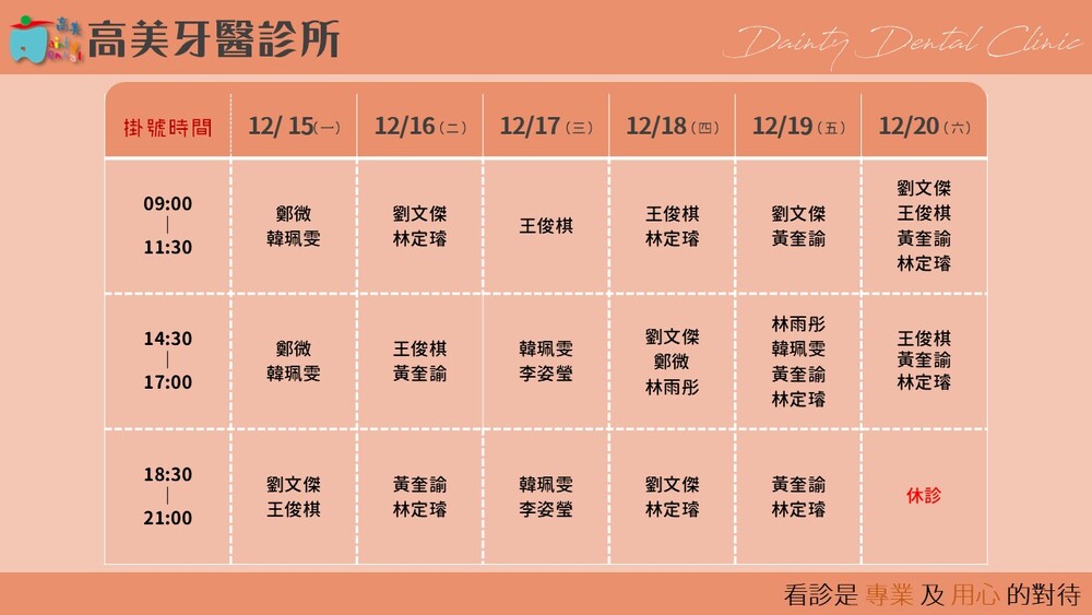 |Dainty Dental Clinic| 高美牙醫診所 |電話|(07)555-5898 |傳真|(07)555-7742 |地址|高雄市鼓山區美術館路32號 歡迎來電預約看診。 高美牙醫聯盟 關心您!