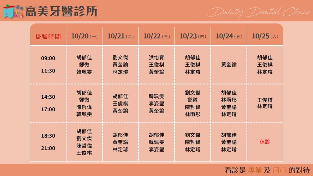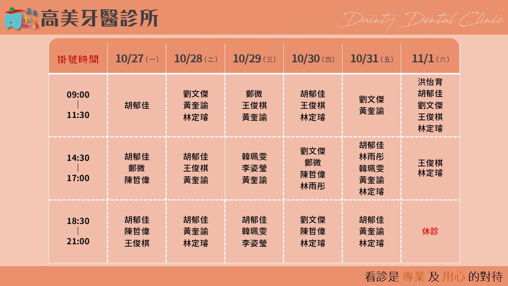 |Dainty Dental Clinic| 高美牙醫診所 |電話|(07)555-5898 |傳真|(07)555-7742 |地址|高雄市鼓山區美術館路32號 歡迎來電預約看診。 高美牙醫聯盟 關心您!