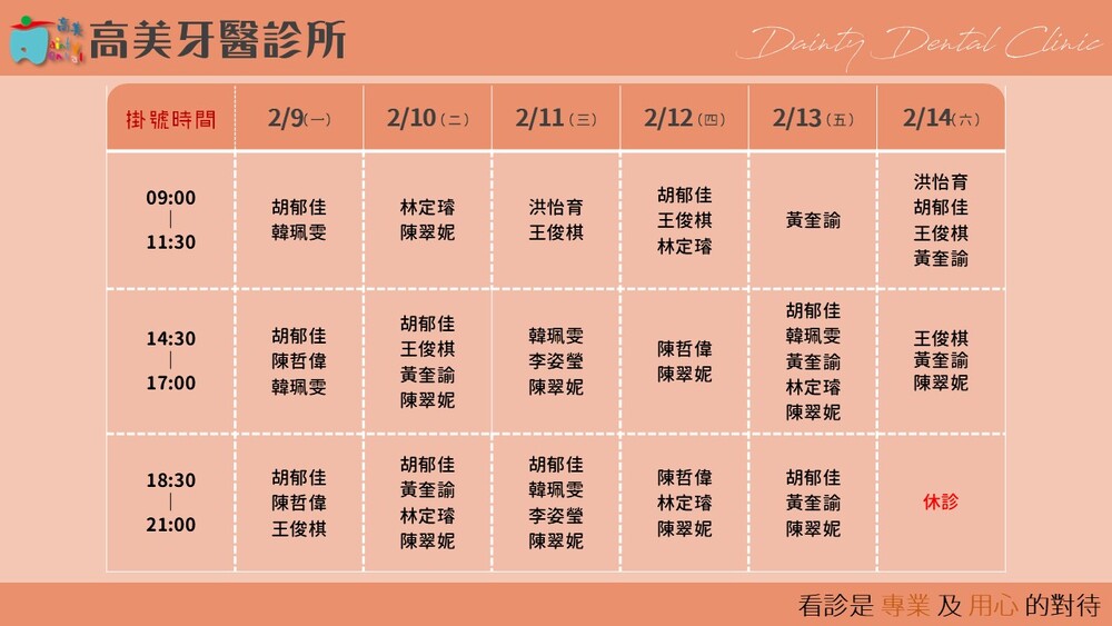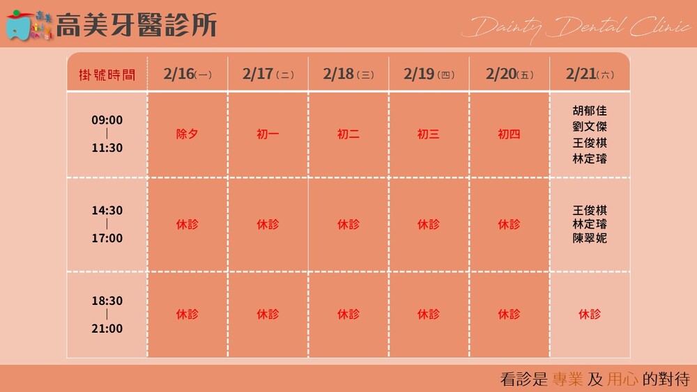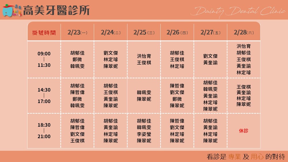 |Dainty Dental Clinic| 高美牙醫診所 |電話|(07)555-5898 |傳真|(07)555-7742 |地址|高雄市鼓山區美術館路32號 歡迎來電預約看診。 高美牙醫聯盟 關心您!