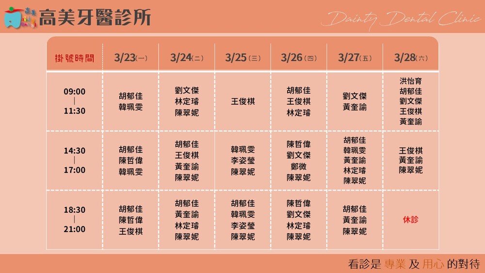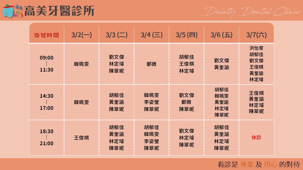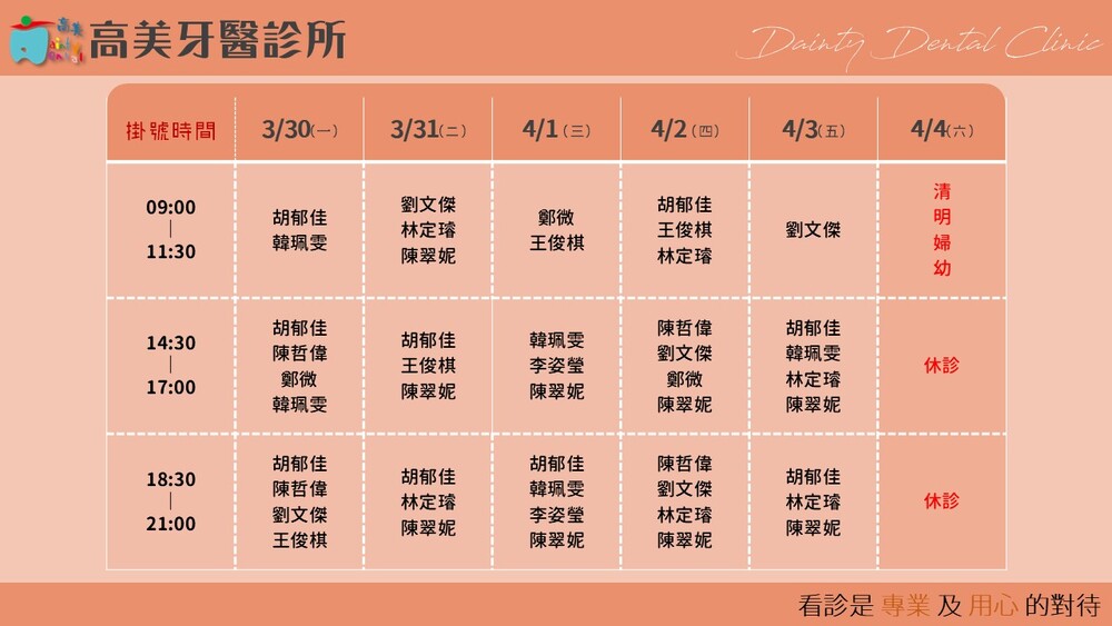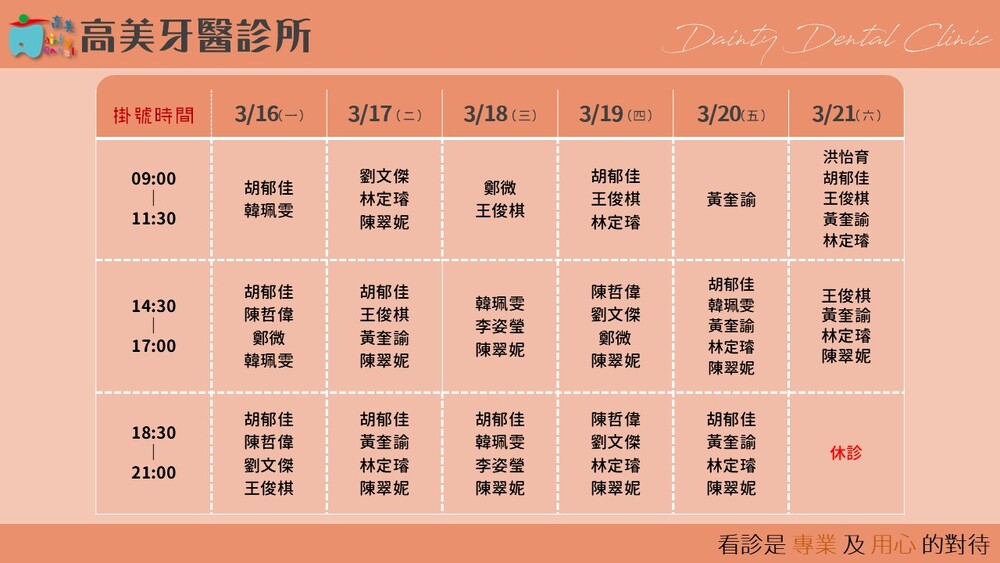 |Dainty Dental Clinic| 高美牙醫診所 |電話|(07)555-5898 |傳真|(07)555-7742 |地址|高雄市鼓山區美術館路32號 歡迎來電預約看診。 高美牙醫聯盟 關心您!